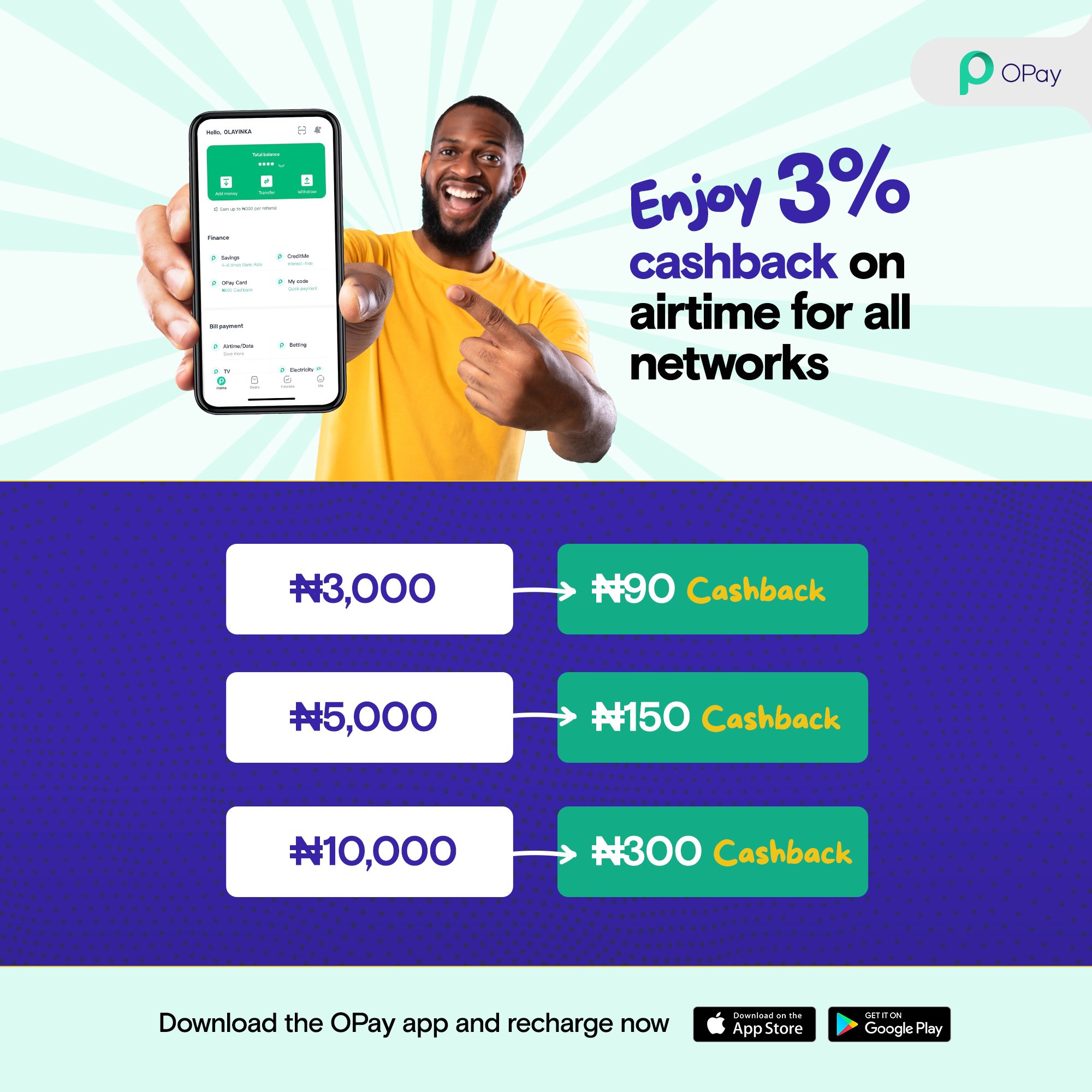 Opay On Twitter Recharge Airtime For Any Network On The Opay App And Get Up To 3 Cashback Bonus Download The Opay App And Start Recharging Now T Amp Cs Apply Domorewithopay Https T Co Fgvdmmfuhx